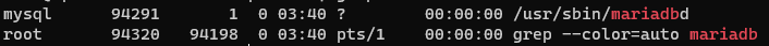 # ps -ef | grep mariadb //서비스 올라갔는지 확인