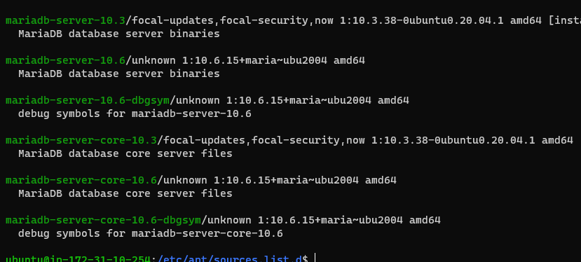 sudo apt-get update 까지 하고 $ apt search mariadb-server