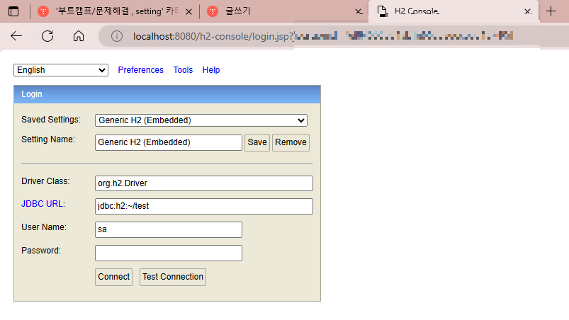 url: jdbc:h2:mem:test //항상 동일한 이름으로 접속 가능