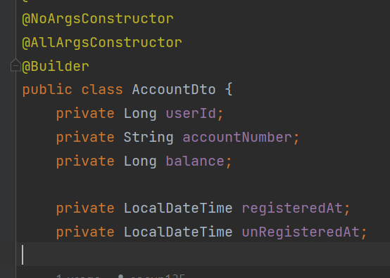 기본생성자를 만들어주라고 하는데 이미 응답으로 받는 AccountDto에는 @NoArgsConstructor로 붙어있다.