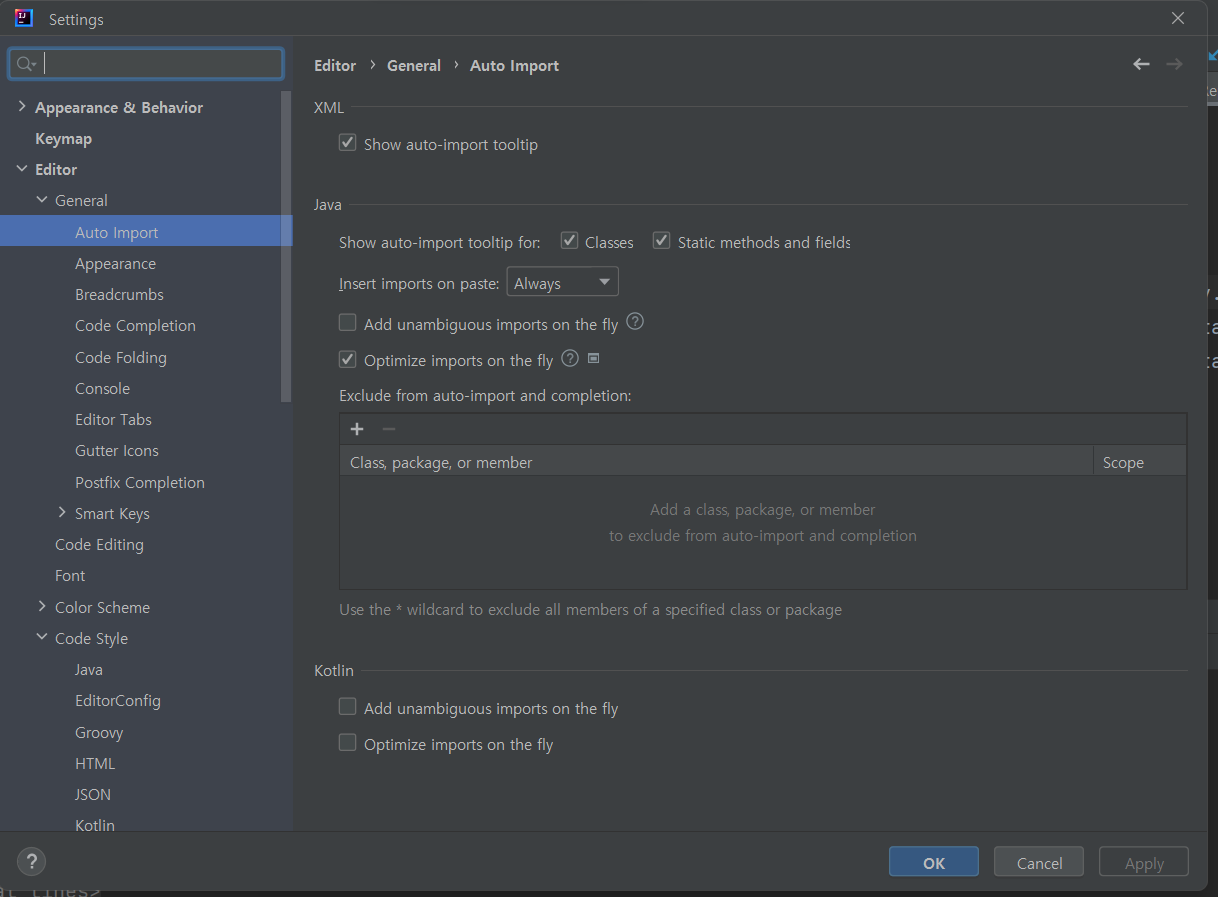 - auto imports 옵션에서 자동으로 삭제되게 체크
