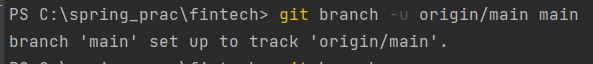 > git branch -u origin/main main : main 현재(local) 브랜치를 자동으로 origin원격 저장소의 main 브랜치로 연결함.
