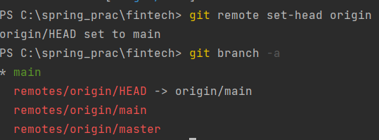 위 명령어 이후 remotes/origin/main이 생성됨.