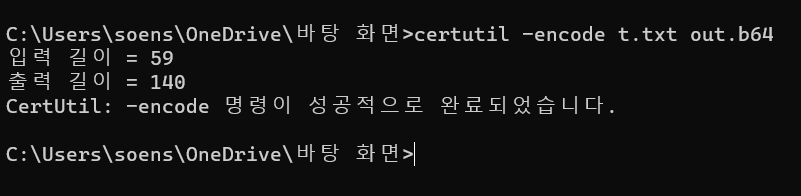 1. 인코딩 할 문자열 t.txt 파일에 저장