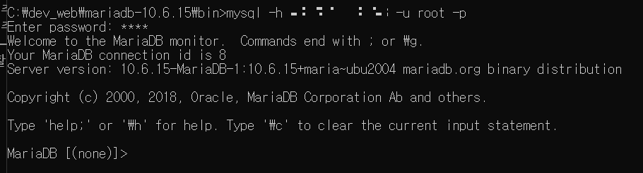 2. 윈도우 cmd 창에서 mariadb가 있는 bin 파일에서