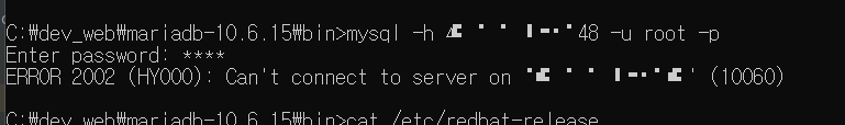 윈도우에서 우분투 MariaDB 접속 시 Can't connect to server 오류