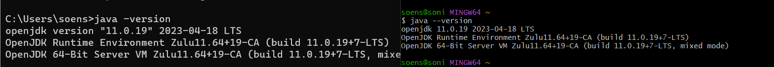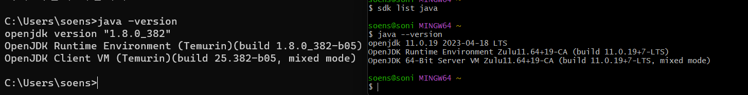윈도우 cmd에서의 jdk버전과 git bash에서의 jdk버전이 다른데 뭐지 ???? sdk man이 맞춰준다는 것 아니었나 ... 흠..