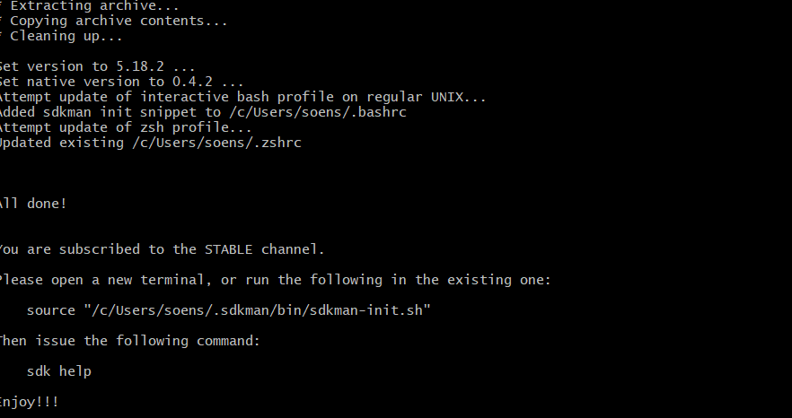 $ source "$HOME/ .sdkman/bin/sdkman-init.sh"