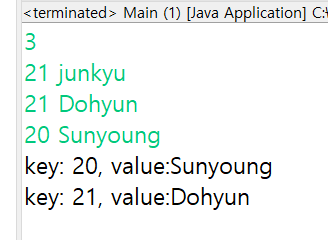 나이랑 이름을 해시맵으로 key value로 해서 받았는데
