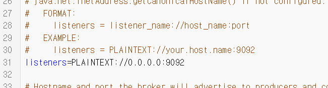 0.0.0.0을 카프카가 설치된 서버의 주소로 대체하기 위해 작성