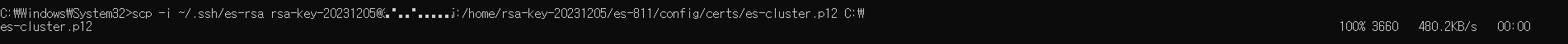 >scp -i ~/.ssh/es-rsa rsa-key-20231205@외부ip:/home/rsa-key-20231205/es-811/config/certs/es-cluster.p12 C:\
