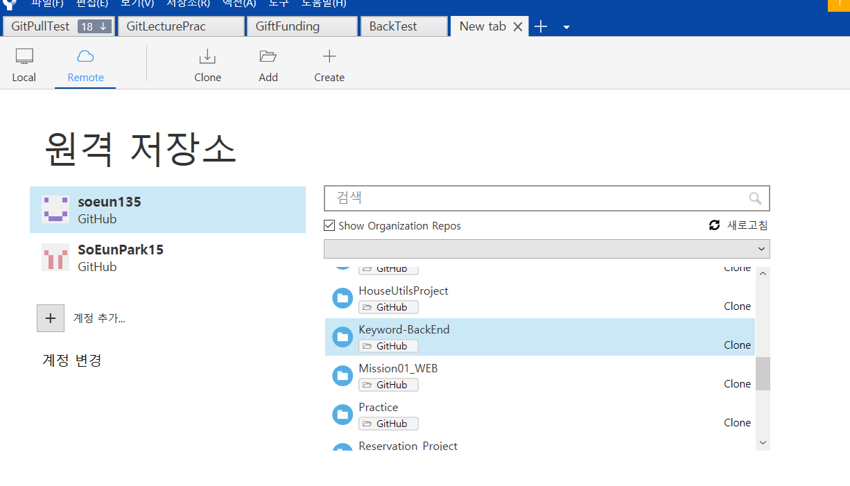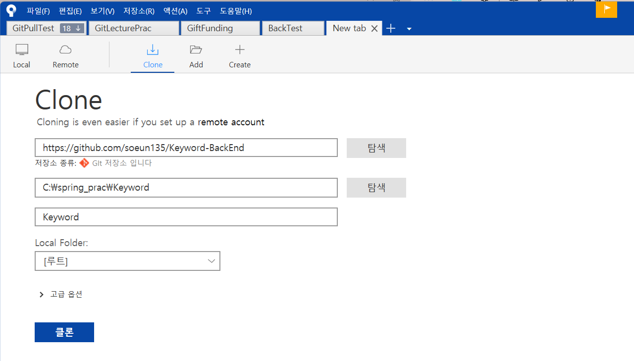 나는 2번째 방법으로 Local Repository를 생성할 것이고, 소스트리를 이용해 clone을 해올 것이다.
