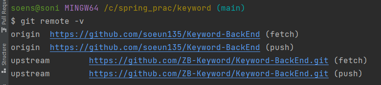 이 위까지만 하면 기본 설정은 다 끝났는데 내가 한 commit/push를 fork해온 나의 remote repository가 아닌 원본 remote repository로 보내기 위해 추가적으로 해야될 것이 있다.