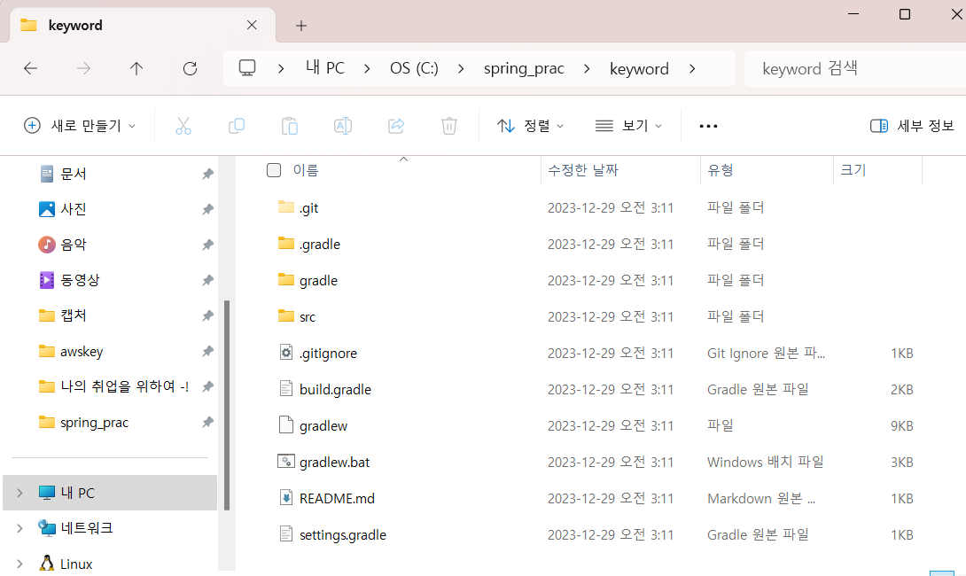 * 여기서 폴더 명을 keyword 로 생성해줘야 함 !