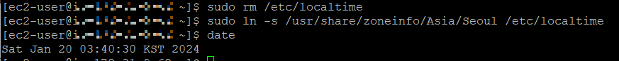$ sudo ln -s /usr/share/zoneinfo/Asia/Seoul /etc/localtime