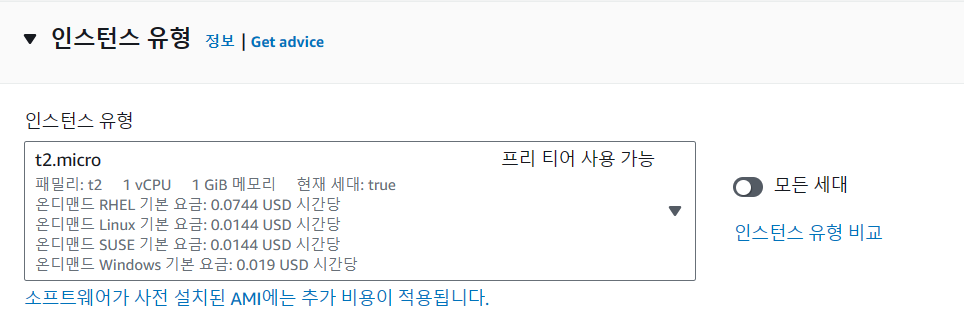 3. 인스턴스 유형 선택하기