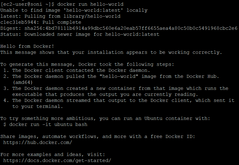 4) 인스턴스 재접속 후 Docker 명령어 실행해보기