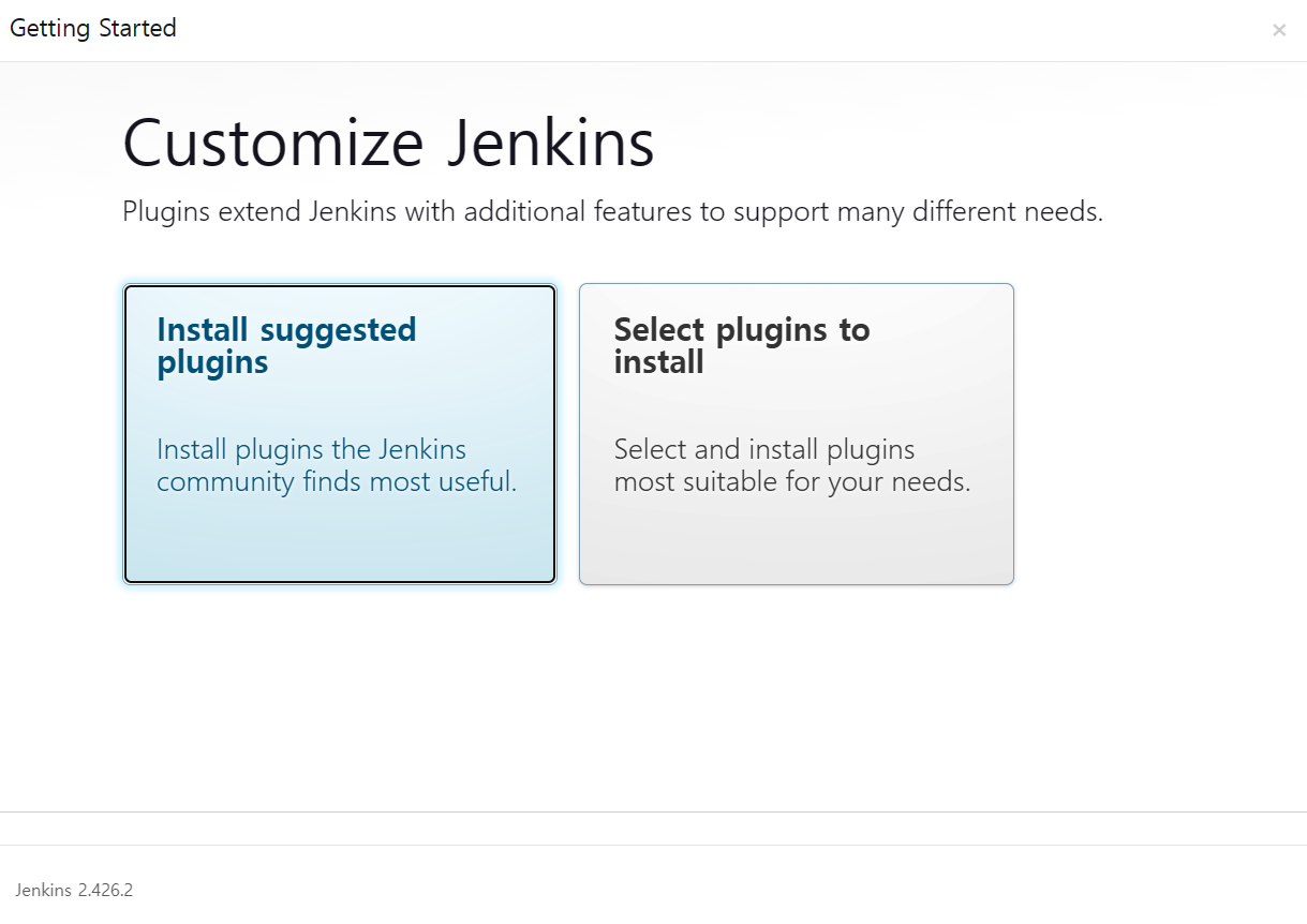 초기에 플러그인을 설치할 수 있는 화면이 나옴.