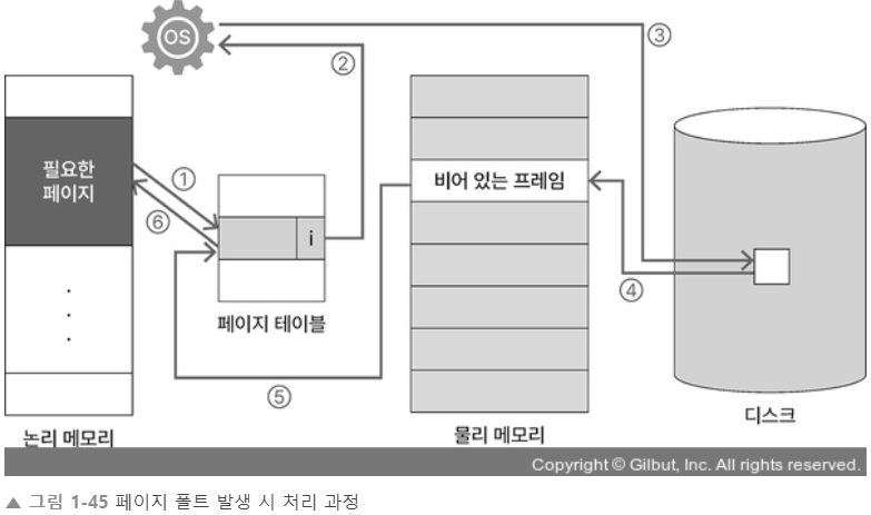 프로그램을 실행하다가 물리 메모리에 필요한 페이지가 없을 때 이를 페이지 폴트라고 한다.