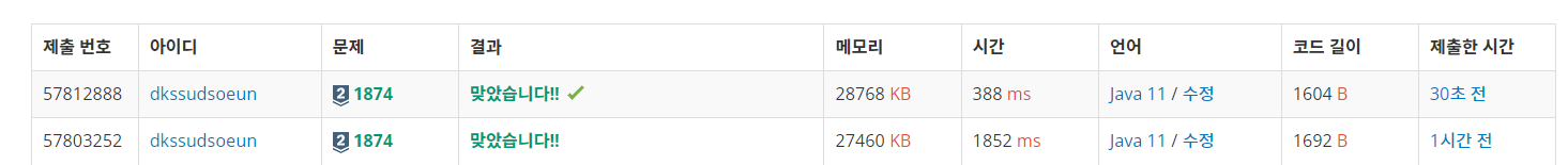 스택의 기본 push , pop 을 먼저 깔끔하게 구현하고 조건에 맞게 코드를 수정하자.