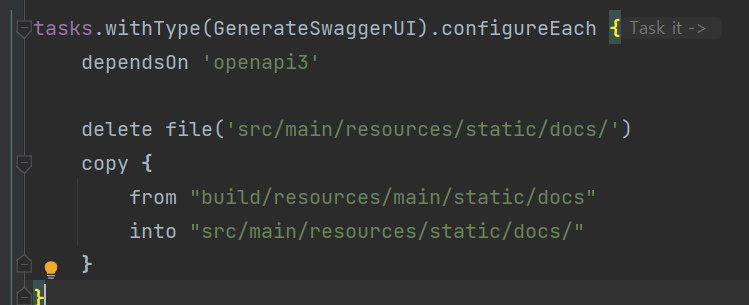 GenerateSwaggerUI task가 openAPI3 task를 의존하도록 설정