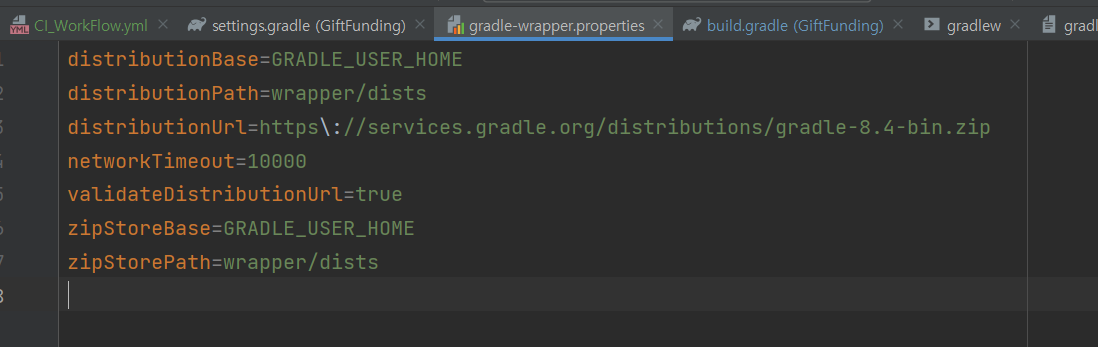 > gradle-wrapper.propertoes에 distributionUrl에 지정되어 있는 gradle 버전을 사용하여 빌드하게 됨.