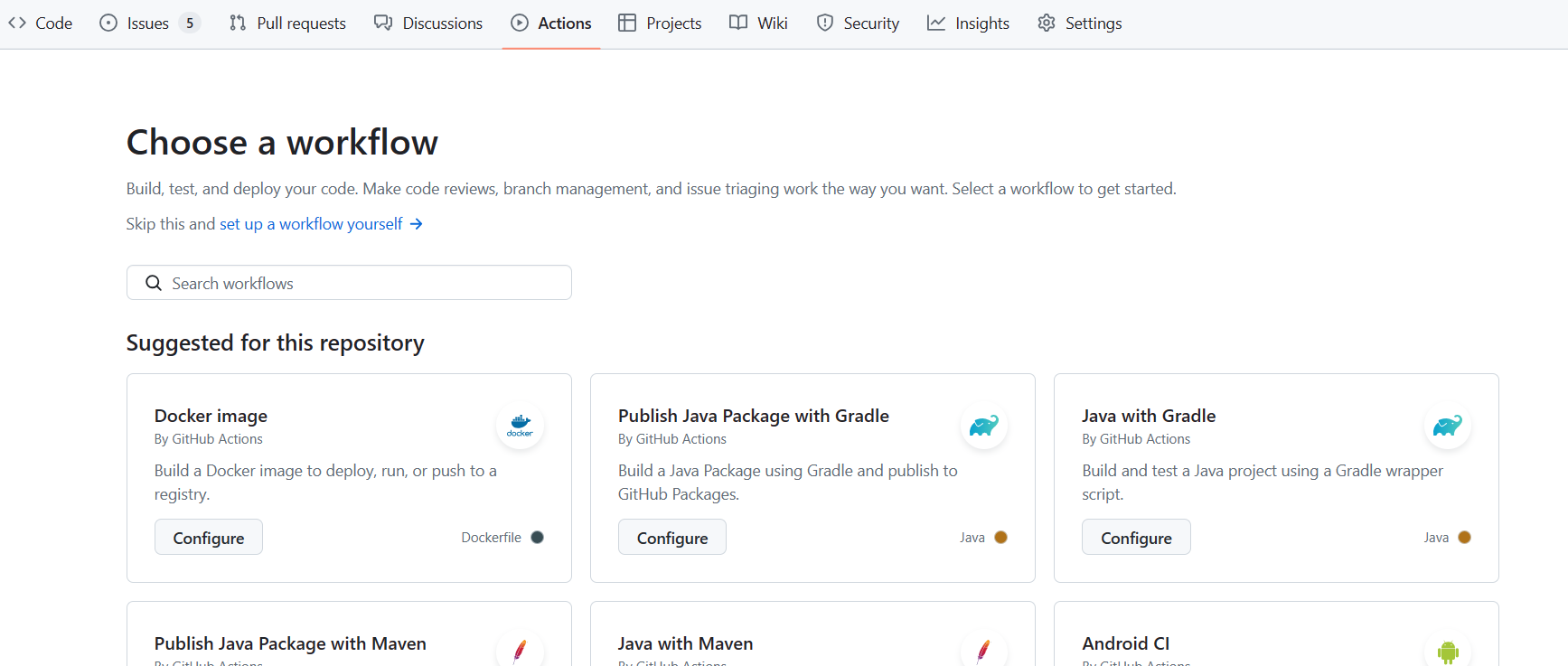 워크플로우 파일을 직접 처음부터 구성해도 되지만 이미 만들어져있는 템플릿을 한 줄씩 공부하면서 사용해보려고 한다.