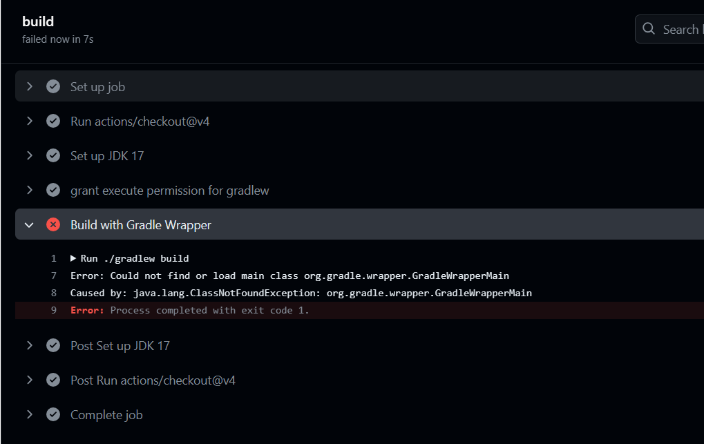 라고 되어있고 아래는 ./gradlew build로 빌드 스크립트를 실행한다.
