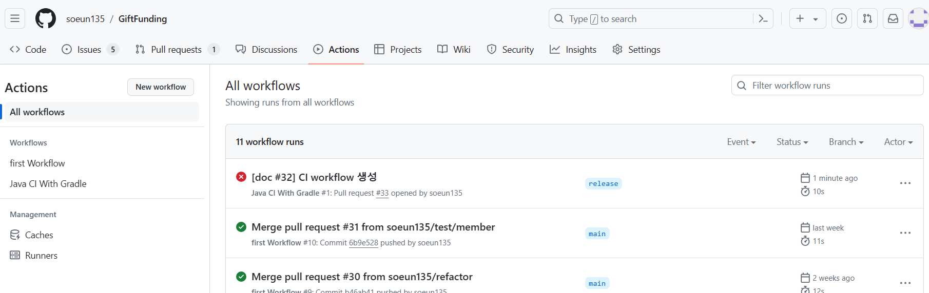 GiftFunding) GitHub Actions CI/CD 적용하기[1] - CI 적용 본문