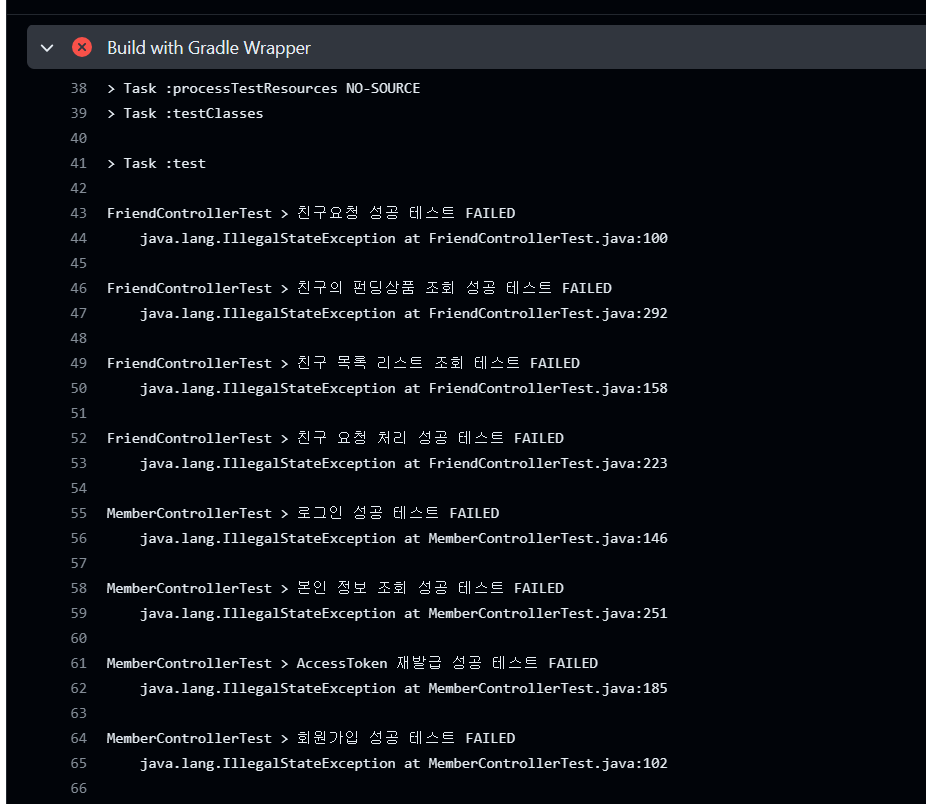 그렇지만 여전히 test는 실패하고 있으니 빌드가 될 수가 없다 ,.,.,,,.,.,. 기존 원인과는 관련이 없다.