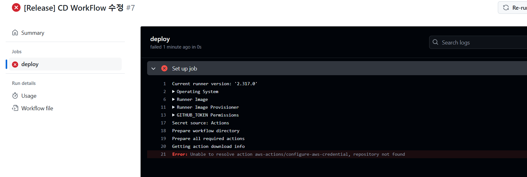 1. Error Unable to resolve action aws-actions/configure-aws-credential, repository not found