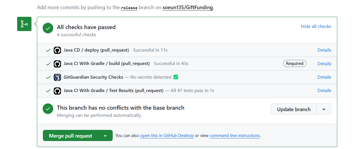 | GiftFunding) GitHub Actions CI/CD 적용하기[1] - CI 적용 (1) | 2024.05.21 |