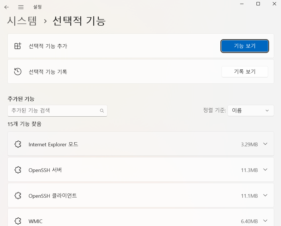 (나는 이미 설치했지만 설치가 안 됐을 경우 선택적 기능 추가에서 설치하면 됨)
