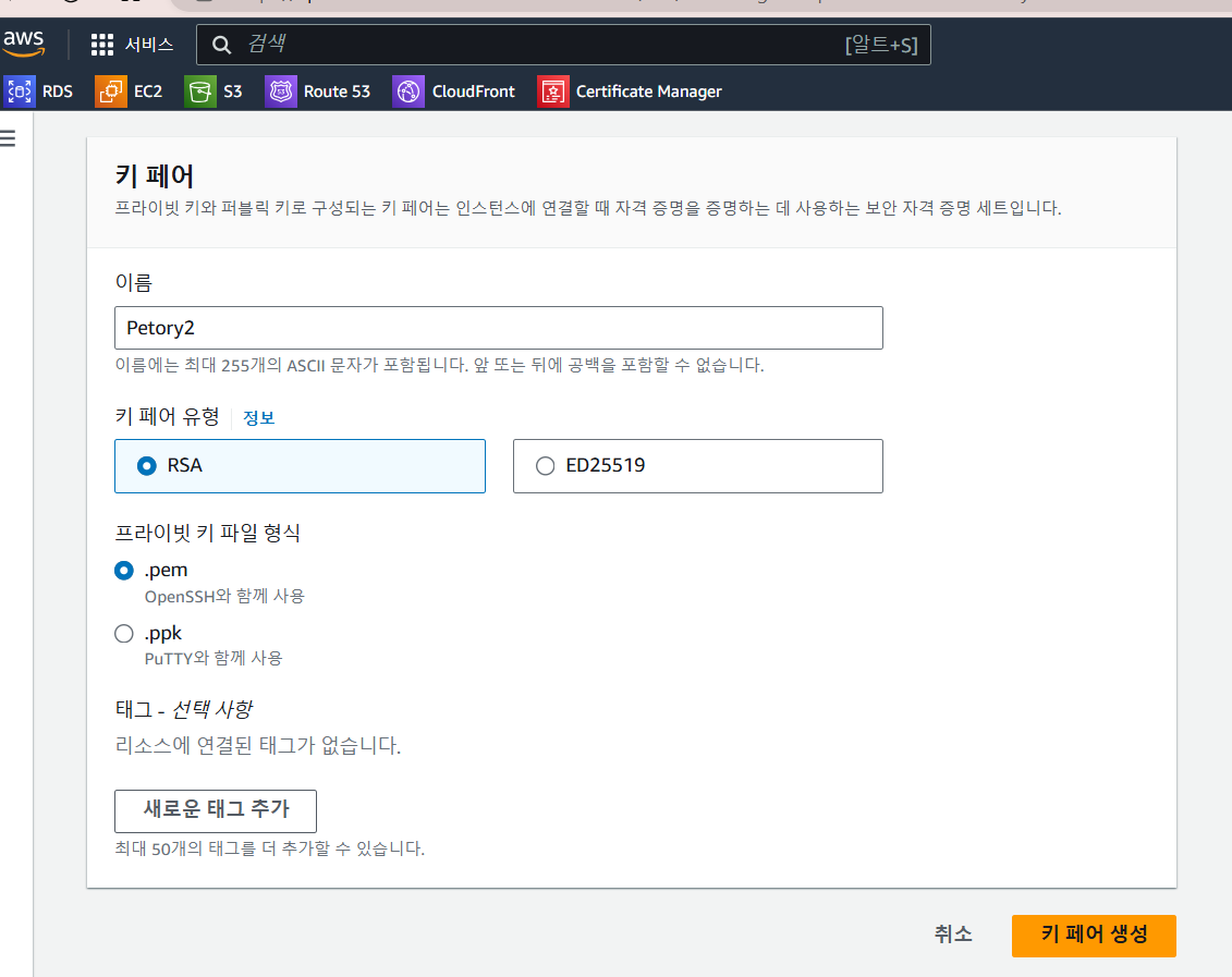 ec2-키페어-키페어생성키페어를 만들어주고 특정위치에 저장한다.