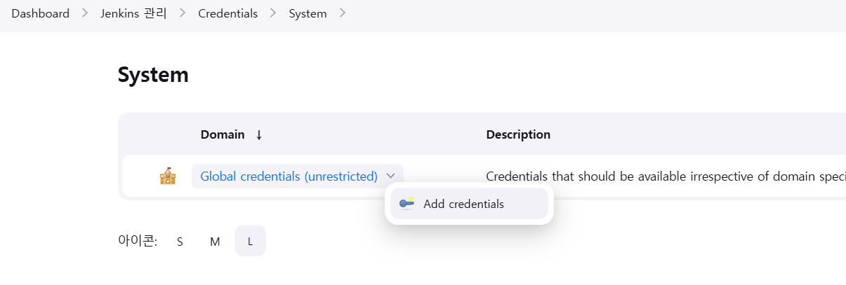 파이프라인 작성에 앞서 해야할 일이 Credentials 등록이다.