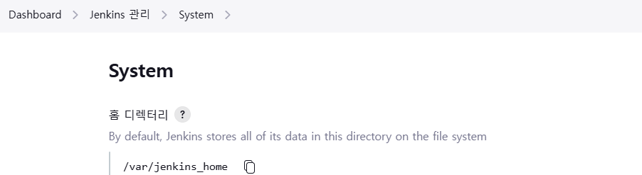 Jenkins 관리 - System에서 확인할 수 있는 홈 디렉터리에 빌드 파일이 생성된다.