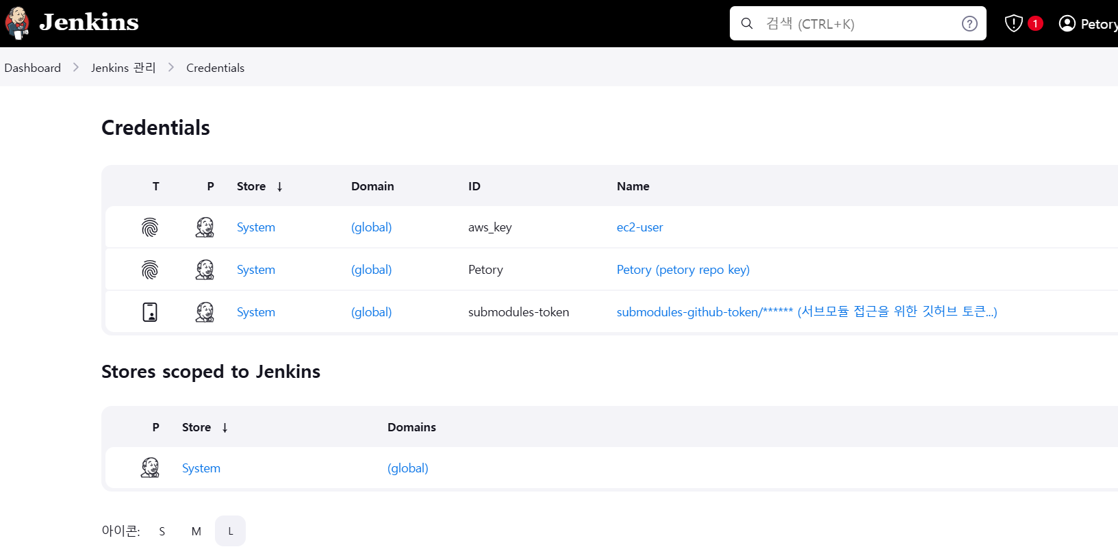 흠 나는 어차피 PesonalAccessToken은 동일하니까 'Petory'로 넣어줘도 될 것 같은데 뭔지 모르게 오류가 나서 submodules-token을 사용한다.