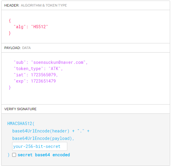 - signature : 헤더에서 정의한 알고리즘 방식 사용.