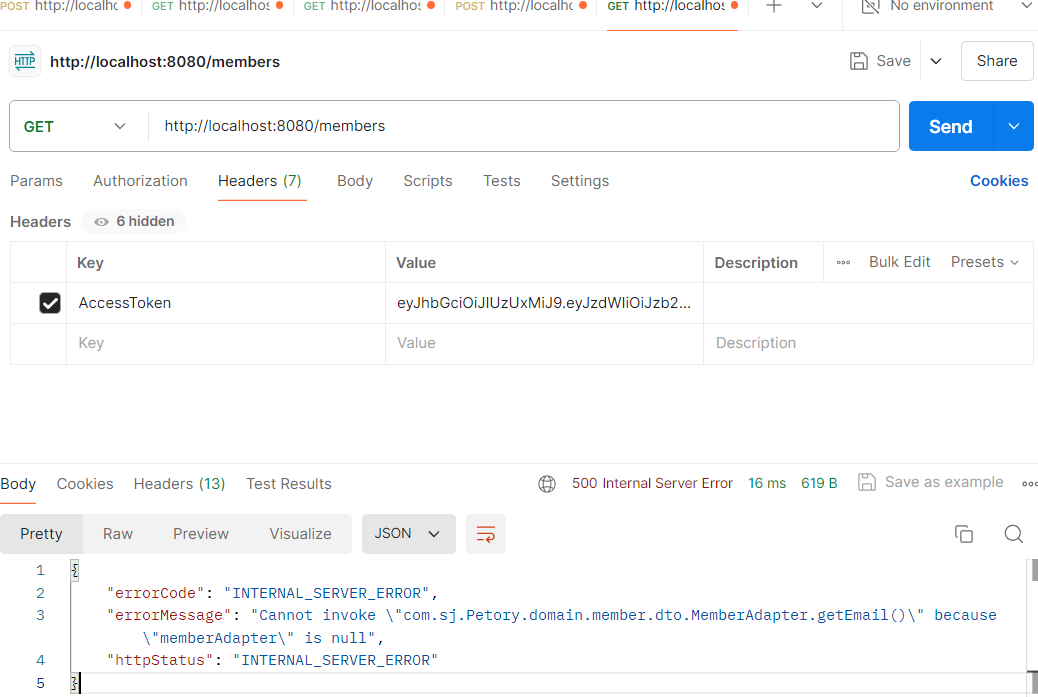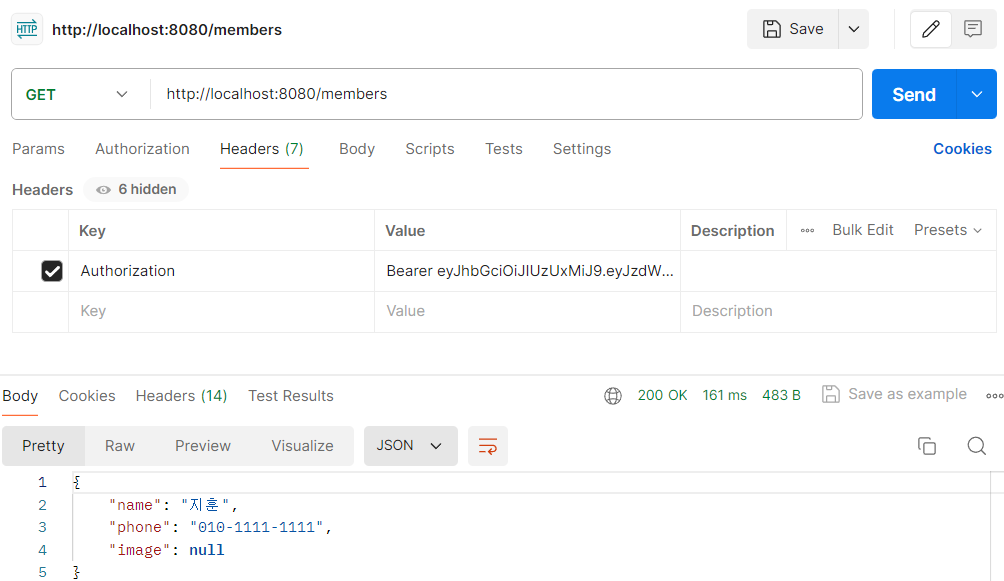 이렇게 인증이 필요한 객체에서 Authorization 으로 Bearer이 붙은 jwtToken을 보내줬을 때 정상적인 인증이 가능해진다 !