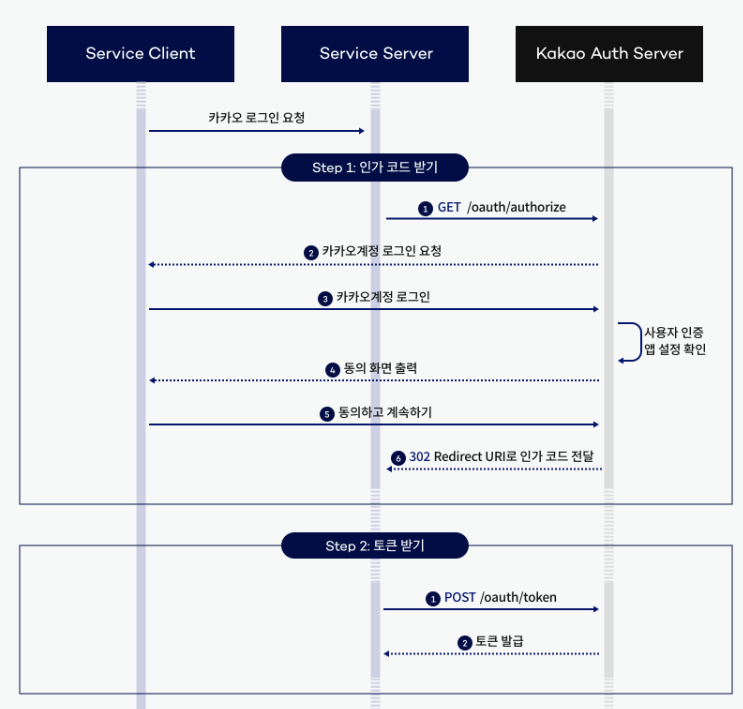 1. 카카오 로그인 완료 후 Redirect URI로 인가 코드 발급됨.