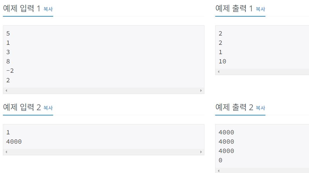첫째 줄에 수의 개수 N(1 ≤ N ≤ 500,000)이 주어진다. 단, N은 홀수이다. 그 다음 N개의 줄에는 정수들이 주어진다. 입력되는 정수의 절댓값은 4,000을 넘지 않는다.