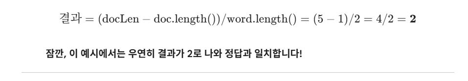 System.out.println((docLen - doc.length()) / word.length());