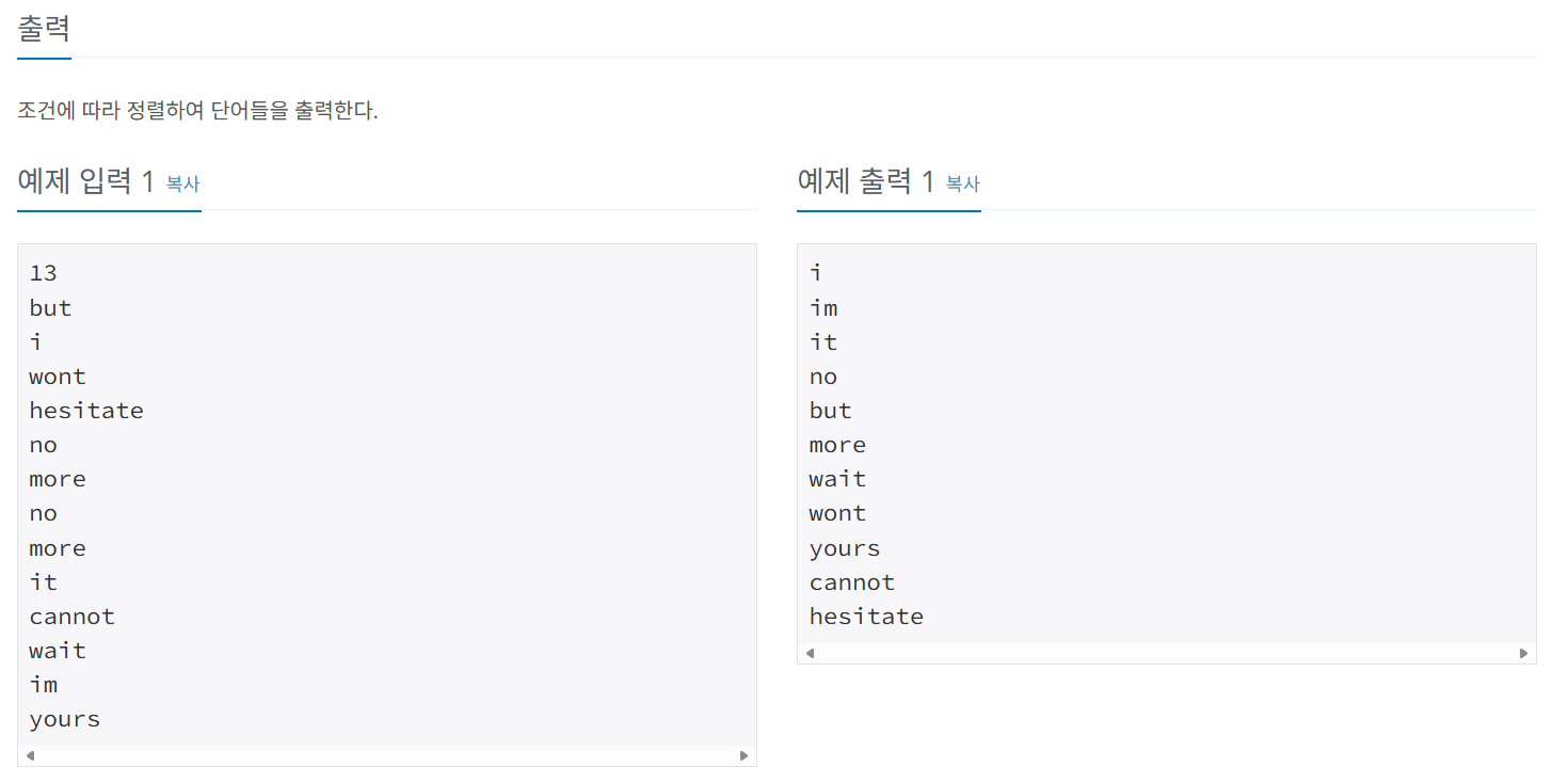 - 길이가 같으면 사전 순으로