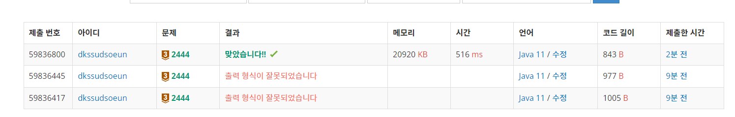 출력형식이 잘못됐다길래 찾아보니까 띄어쓰기로도 이렇게 나올 수 있다고 했다.
