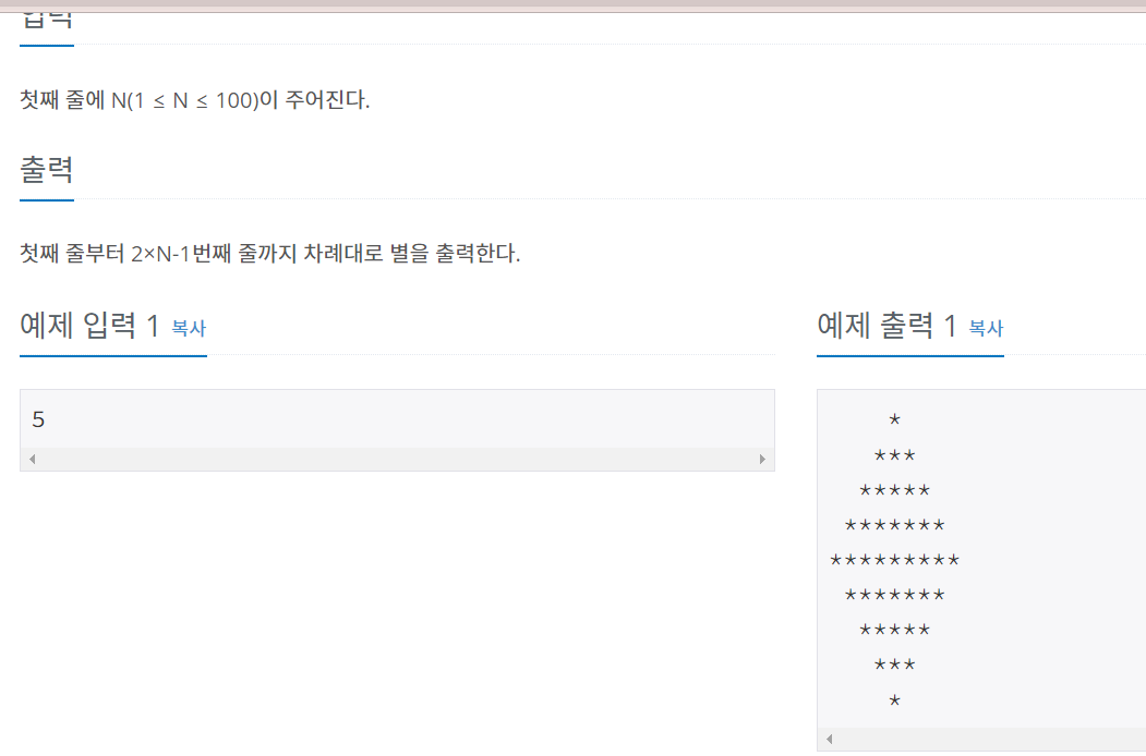 첫째 줄부터 2×N-1번째 줄까지 차례대로 별을 출력한다.
