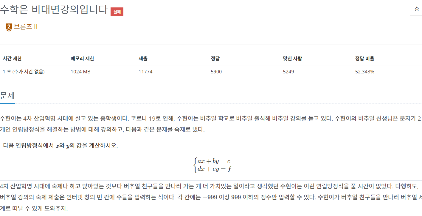 19532번: 수학은 비대면강의입니다 (acmicpc.net)