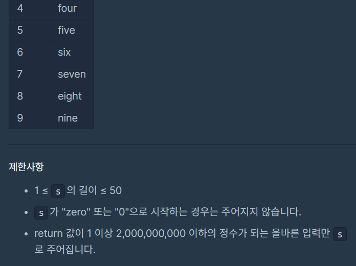 코딩테스트 연습 - 숫자 문자열과 영단어 | 프로그래머스 스쿨 (programmers.co.kr)