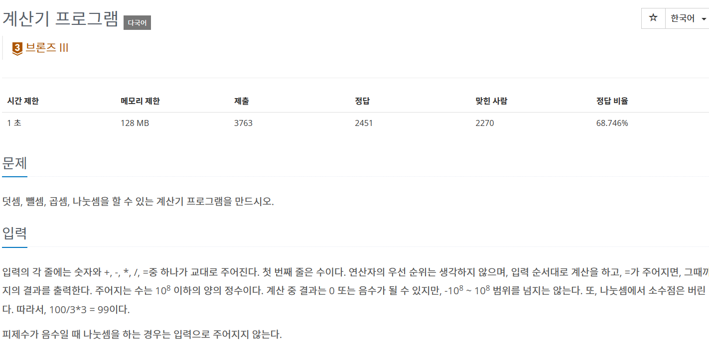 (백준/자바) 힌트문제2 03. 구현 - 백준 5613번 문제 : 계산기 프로그램 본문