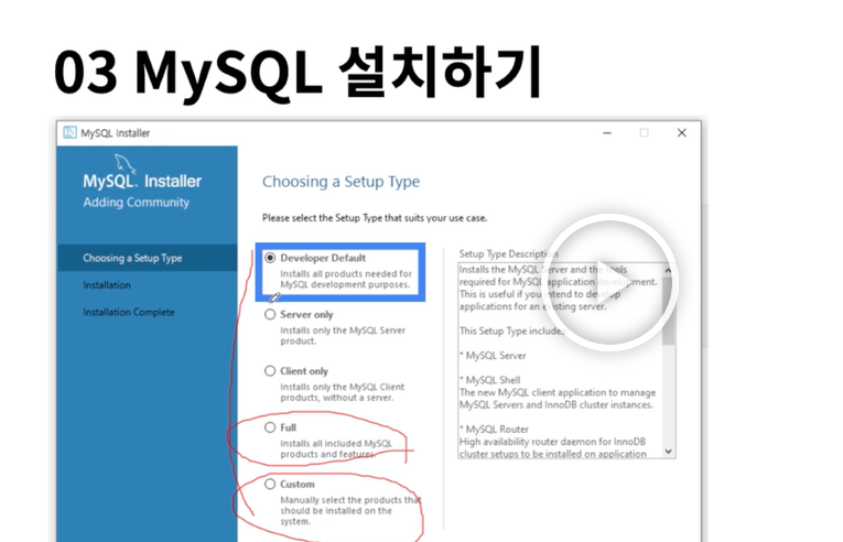MySQL 설치 중 developer default 버전