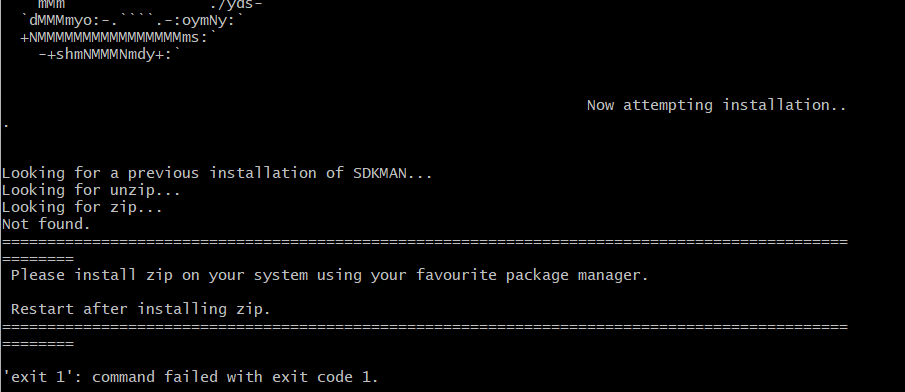 윈도우에서 sdk man 설치 시 Please install zip on your system using your favourite package manager. 오류